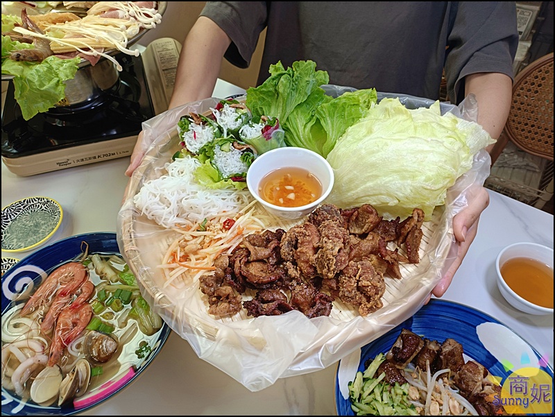 我們家很愛吃越南美食,但有些越南小吃店環境實在是去一次就怕,後來吃過越好吃越南料理之後,就愛上他們家乾淨衛生的空間,餐點選項多隨便點都好吃。我們點了滿漢拼盤以及招牌推推鍋,再加幾個單點就擺滿桌面好豐盛。